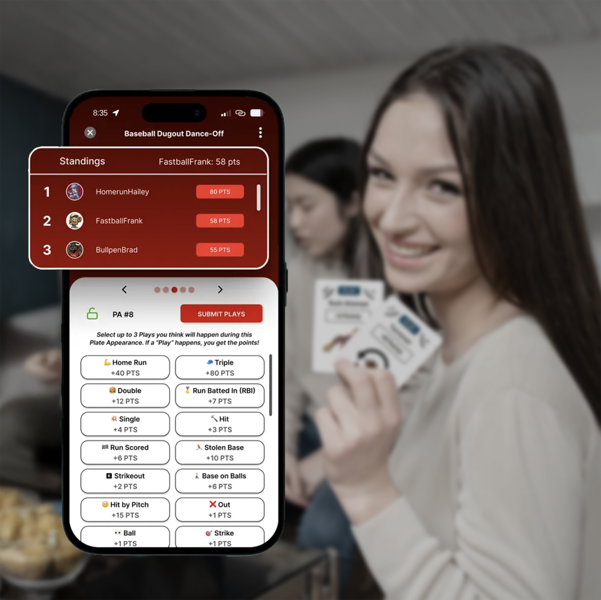 Watch live games and make predictions in real time to have fun with friends.